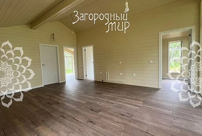 Лот 69113. Космынка. Дом. в новом охраняемом коттеджном поселке "Космынка светлая". Современный каркасный дом, качественно утеплён (построен профессиональной строительной компанией с учётом всех СНИПов и нормативов), внешне отделан профлистом с доборными элементами RAL 7024 + лиственница, площадью 84 кв.м с отделкой «под ключ» и возможностью проживать круглый год.