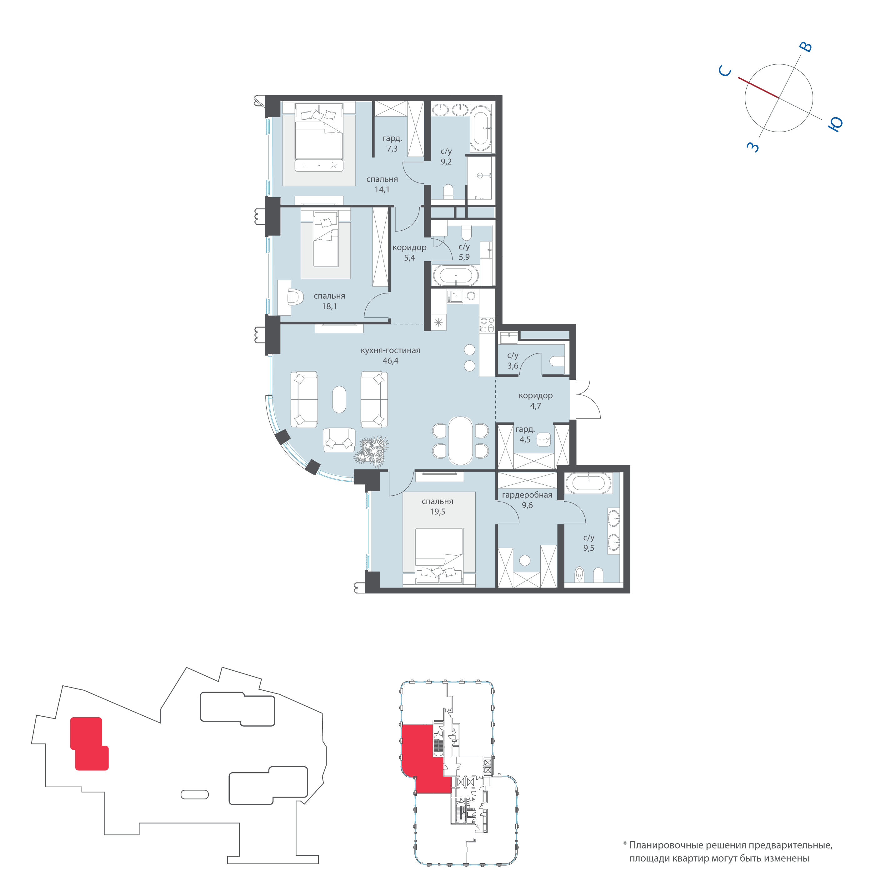 Купить 3к квартиру 159 м² в ЖК Татарская 35