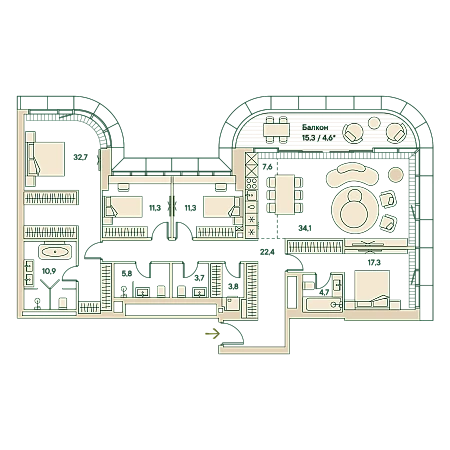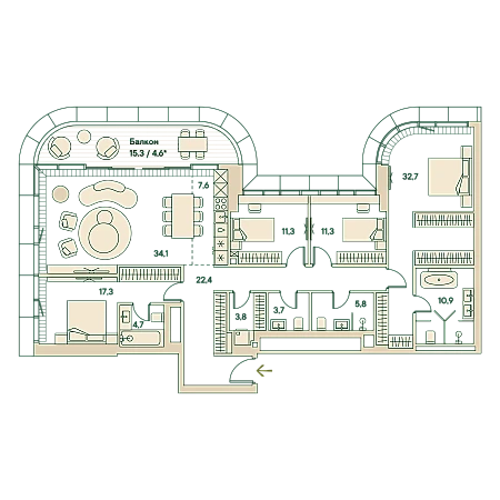 Купить 3к квартиру 160 м² в ЖК Татарская 35
