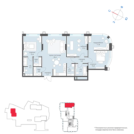 Купить 3к квартиру 128 м² в ЖК Татарская 35