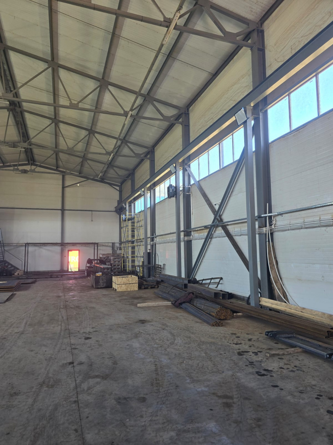Высота потолков 8м до фермы, 10м в коньке.