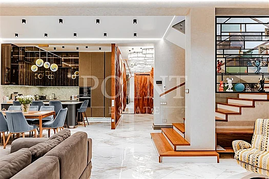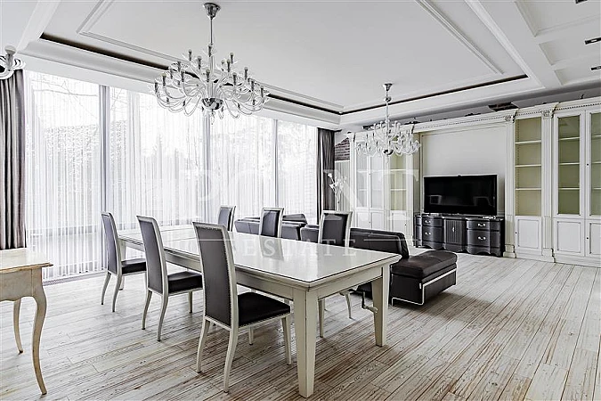Лот: 67279. Предлагается трехэтажный загородный таунхаус площадью 430 кв.м "под ключ" без мебели, построенный на участке 5 соток с ландшафтным дизайном, в охраняемом поселке, в самом сердце Рублево-Успенского шоссе. Функциональная планировка. На первом этаже находится большой холл, постирочная, две гардеробные, санузел, прихожая. Второй этаж вместил кухню, столовую, кабинет, санузел, балкон. Третий этаж занимают спальня с гардеробной и санузлом, еще две спальни, одна из которых с гардеробной, санузел, балкон. Имеется встроенный гараж на два машиноместа. Поселок окружает удивительно живописная природа. Берега Москва-реки помогут вам забыть о проблемах, отдохнуть в спокойной атмосфере и набраться сил. На территории находятся рестораны, теннисные корты, детский английский клуб, спортивные площадки. Рядом расположены дошкольные образовательные учреждения, гимназия, физкультурно-оздоровительные и торгово-развлекательные комплексы, клиника эстетической медицины.