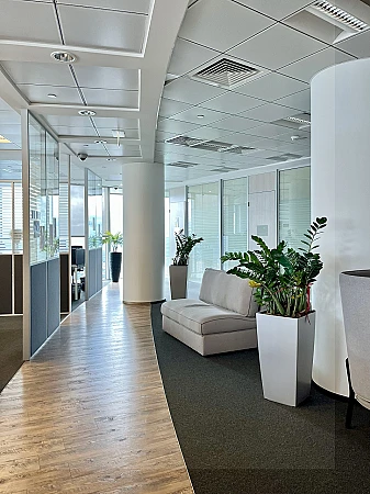 Функциональная планировка - большая зона open space, выделенные кабинеты, переговорные комнаты разного формата, кухня с обеденной зоной, санузлы.