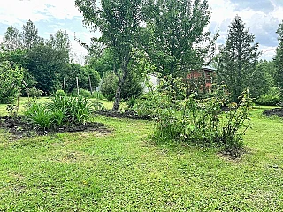 Наш участок прекрасный ботанический сад, захваченный дикой природой. Он изобилует разнообразными садовыми растениями. Среди них множество многолетних цветов, включая ирисы, флоксы, розы, пионы, белую мускусную мальву, рудбекию, хосты, лилейники и другие. Также здесь представлены декоративные кустарники и деревья: туи, барбарис, белый дерн, боярышник, сирень, жасмин и другие. Кроме того, на участке растут плодовые культуры: ежевика, смородина, слива, яблоня, груша и черноплодная рябина, сортовой и дикий виноград.