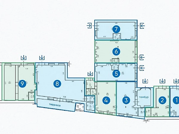. Вся торговая галерея находится внутри двора, проход через арку. В будущем - активный торгово-офисный кластер. В данный момент идет завершение ремонтных работ по фасаду, входным группам.
