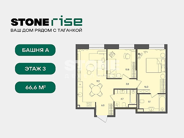 Купить 2к квартиру 66 м² в ЖК STONE Rise