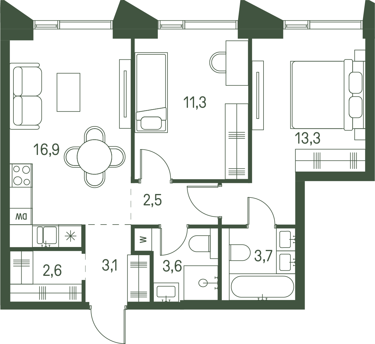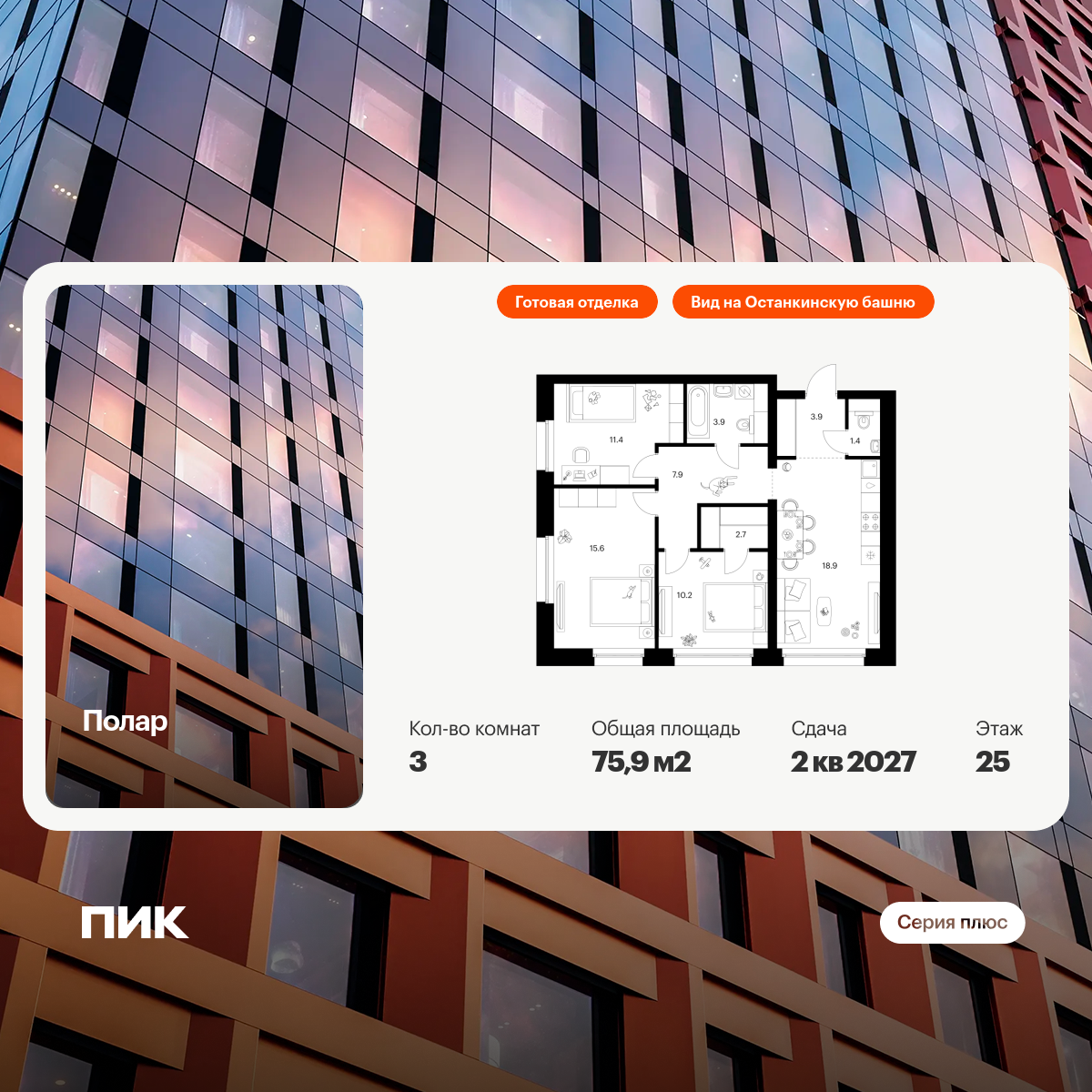 Купить 2к квартиру 57 м² в ЖК Moments (Моментс)
