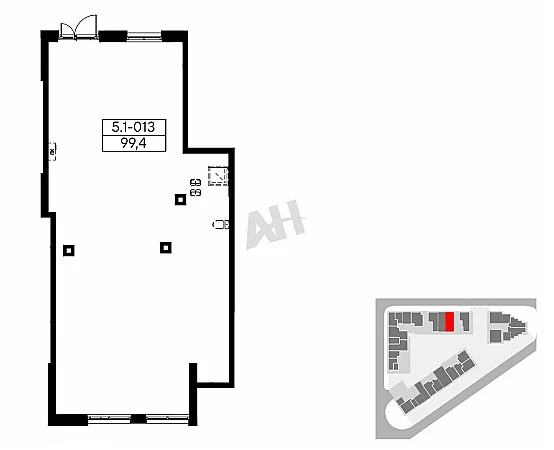 Лот №920846 Делимся комиссией с коллегами! Предлагается к приобретению помещение общей площадью 99,4 м², предназначенное для свободного использования. Высота потолков составляет 4,41 метра, что создает дополнительные возможности для планировки. Электроснабжение объекта обеспечивается разрешенной мощностью 19,9 кВт.
