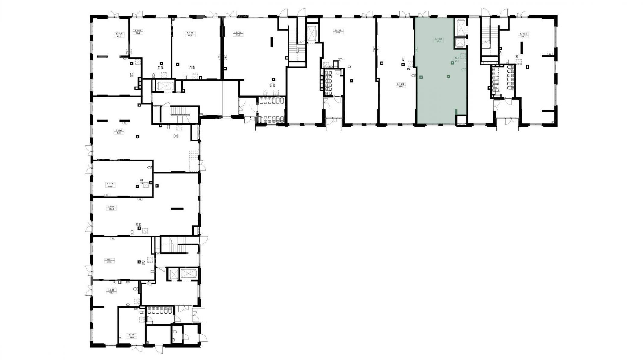 Помещение передается без отделки, с одним входом. Для подключения инженерных систем предусмотрены каналы вентиляции диаметром 100 мм и сечением 200х150 мм. Объект расположен на нулевом этаже, витринное остекление отсутствует.
