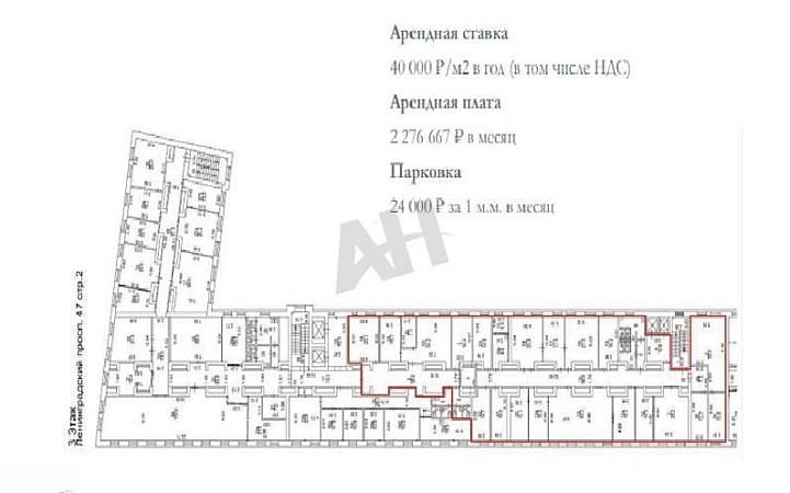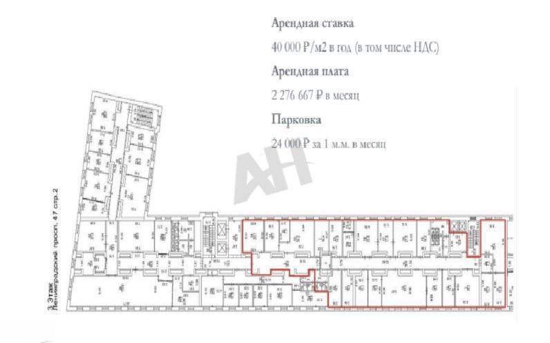 Стоимость аренды: 40000 руб/м2/год (2276667 руб в месяц) В цену включено: эксплуатационные расходы, НДС 22%. В цену не включено: затраты на электричество, коммунальные расходы.