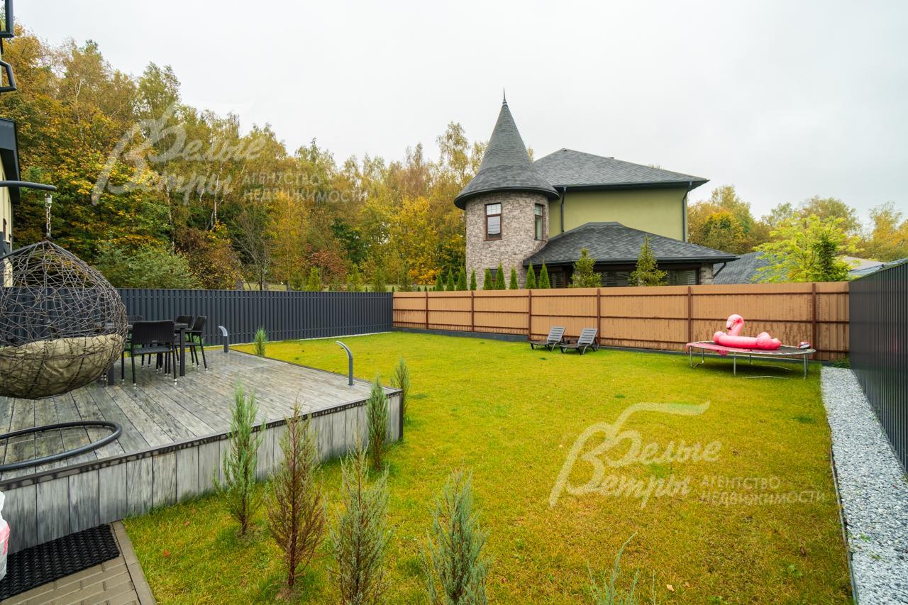Мебель, оборудование: кухонный немецкий гарнитур с фасадами МДФ цвета графит и орех, верхние фасады - тонированное стекло, остров шириной 1.8 м и полу барный стол на 3 чел. Вся встроенная техника ASKO: духовой шкаф с функцией пароварки, посудомоечная машина, холодильник. Итальянская вытяжка FABER. Кофемашина. Столешница из кварцевого агломерата. В котельной морозильная камера Gorenje. Дизайнерский обеденный стол из массива на 8 персон, стулья. В гостиной диван Белорусской фирмы Белфан, этой же фирмы из массива весь спальный гарнитур и комоды в мастер-спальне. В детских мебель Mr.Doors, гардеробная Кардинал. В детской спальне - двухъярусная кровать..