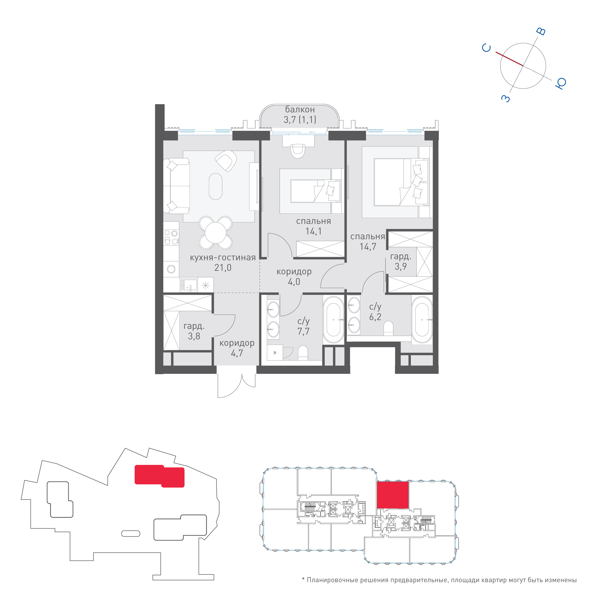 Купить 2к квартиру 83 м² в ЖК Татарская 35