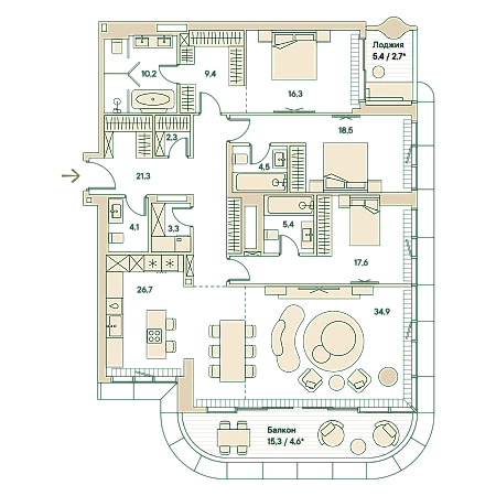 Купить 3к квартиру 182 м² в клубном доме OPUS