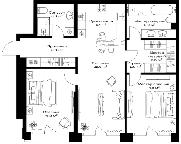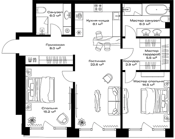 Купить 2к квартиру 91 м² в клубном доме OPUS