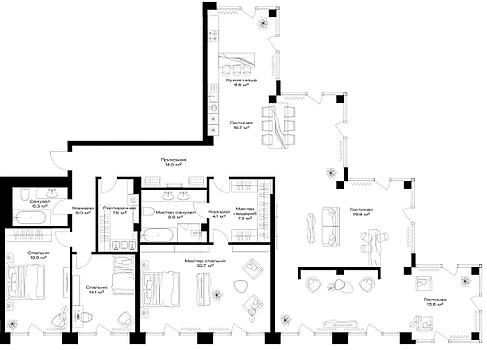 Купить 4к квартиру 196 м² в клубном доме OPUS