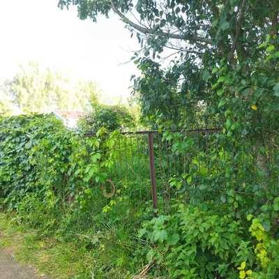 Плодородный слой почвы, много декоративных кустарников и плодовых деревьев (яблони).