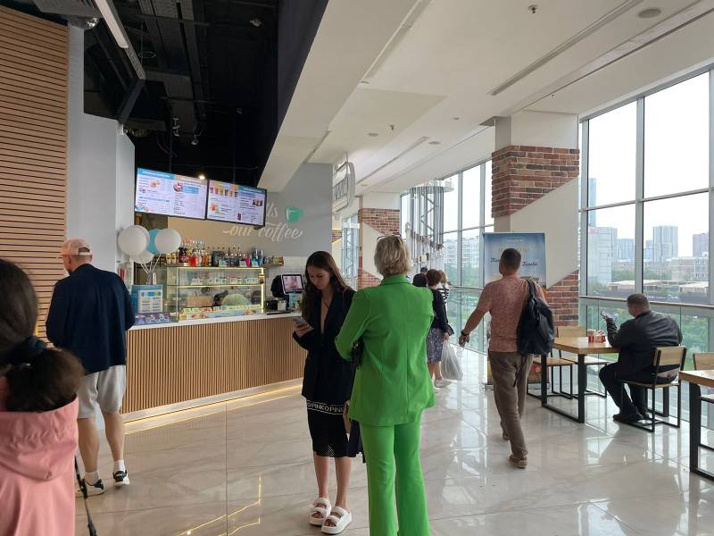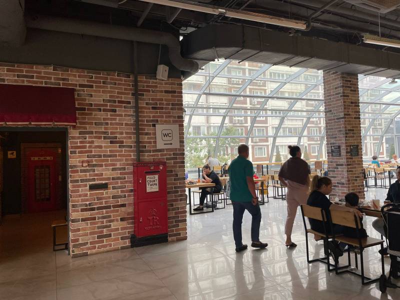 Помещение расположено на выходе с эскалатора, в зоне фудкорта на 4 этаже. В контуре есть все коммуникации, мощность, возможно сделать вытяжку. Предлагается под общепит, не конкурирующий с текущими арендаторами в зоне фудкорта.