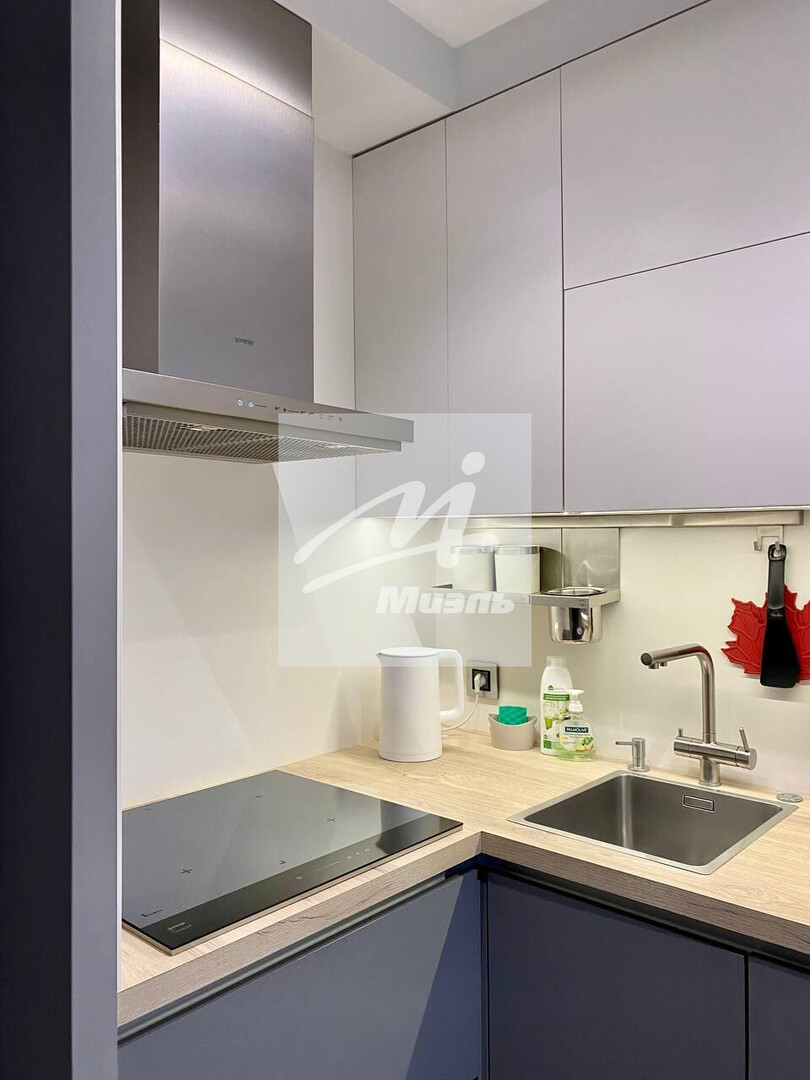 Просторная кухня оборудована современной встраиваемой бытовой техникой марки *Gorenje*. Здесь установлены индукционная варочная поверхность, многофункциональная микроволновая печь с грилем, удобная посудомоечная машина и вместительный духовой шкаф. Для комфорта хозяйки предусмотрены мойка *Blanco*, практичный измельчитель бытовых отходов, современный фильтр для питьевой воды и удобный диспенсер для жидкого мыла. Все выдвижные элементы оснащены качественной австрийской фурнитурой *Blum*, обеспечивающей плавное закрытие.