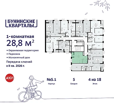 Купить 1к квартиру 33 м² в ЖК Ильинские луга