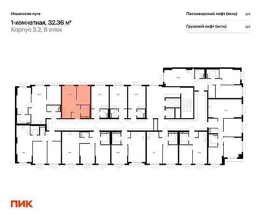 Продаётся 1-комн.квартира площадью 32.36 кв.м на 8 этаже 9 этажного дома (Корпус 3.2, секция 4) проекта ПИК Ильинские луга. Светлый просторный подъезд на уровне земли, функциональная планировка, большие окна, с отделкой.
