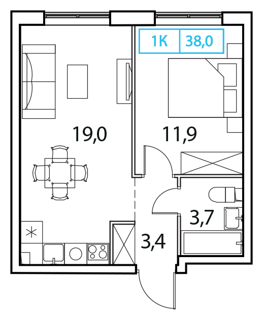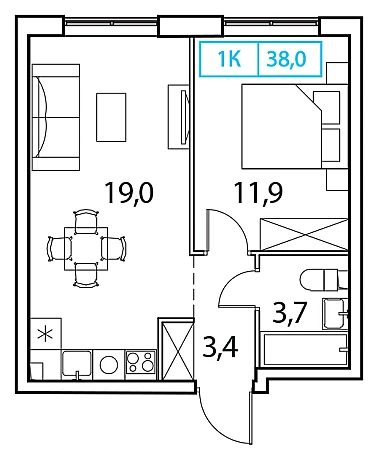 Купить 1к квартиру 38 м² в ЖК Новый Зеленоград