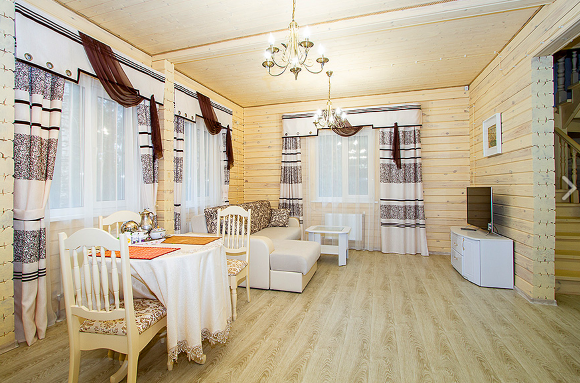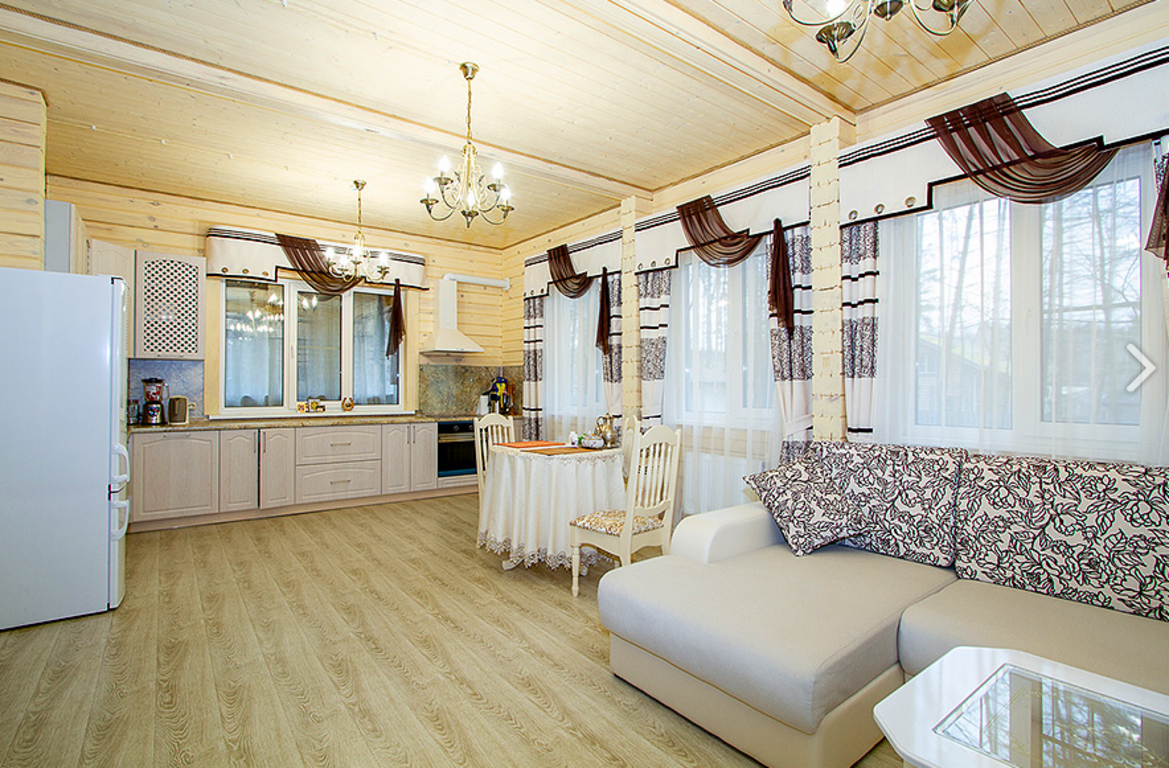 ==ЛОТ 215870 == Коммунальные платежи включены в стоимость. Прекрасный загородный дом в охраняемом поселке "Заря", расположенном в живописной деревне Большаково на территории Московской области. Изысканный дом выполнен из северного леса. На территории поселка площадью 5 гектар имеется зона отдыха с баней, домиком-барбекю, прогулочными зонами и детской площадкой, все это только для проживающих . В доме имеется все необходимое для комфортного проживания - просторная кухня с бытовой техникой, уютная гостиная с мягкой мебелью, несколько уютных спален, санузлы с душевой кабиной и ванной. Индивидуальная система водоочистки. Поселок "Заря" предлагает высокий уровень безопасности - круглосуточная охрана, сигнализация в каждом доме, видео-наблюдение. Рядом с поселком есть частная школа "Светлые горы" , а также продуктовый магазин, теннисный корт. Недалеко торговые центры "Отрада", "ОБИ", "ОКЕЙ". Удобная транспортная доступность - всего 10 минут на автомобиле до станции метро Пятницкое шоссе, ходит общественный транспорт. Этот загородный дом идеально подойдет для постоянного проживания с семьей. 1 этаж: прихожая с гардеробом и большим зеркалом; просторная кухня (с плитой, духовкой, вытяжкой, посудомоечной машиной); гостиная (с мягкой мебелью из натуральной кожи и жк-телевизором); гостевая спальня (с мебелью и жк-телевизором); санузел с душевой кабиной; бойлерная с индивидуальной системой водоочистки. 2 этаж: хозяйская спальня с большой кроватью и мебелью; спальня с кабинетом и большим балконом; просторный санузел с ванной.