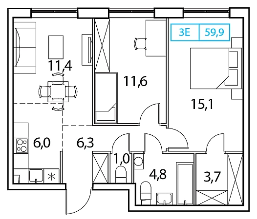 Купить 2к квартиру 59 м² в ЖК Новый Зеленоград