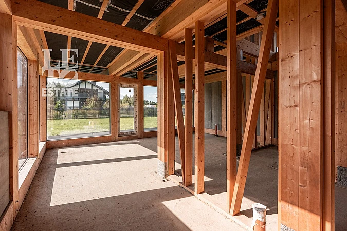 В поселке реализованы современные дома в стиле фахверк с панорамным остеклением. Из окон домов открывается впечатляющие виды на Икшинское водохранилище.