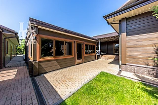 1 этаж: Прихожая, просторная гостиная (68 кв. м) с панорамными окнами, местом для камина, парадной кухней и выходом на террасу с красивым видом на лес. Мастер-спальня, 2 спальни, кабинет. Ванная комната со СПА-зоной и сауной, выход на террасу, где можно установить бассейн или купель. Отдельная техническая кухня, кладовая, котельная, постирочная. 2 гардеробные комнаты, гостевой с/у.