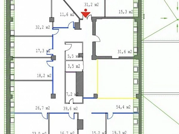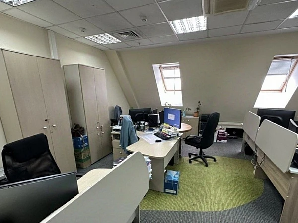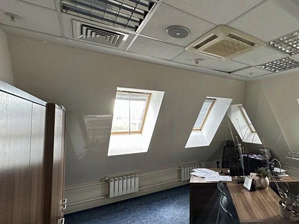 . Помещение расположено на шестом (мансардном) этаже, стандартный офисный ремонт, кабинетная планировка, есть своя кухня и с/у. Установлена приточно-вытяжная вентиляция, кондиционирование.