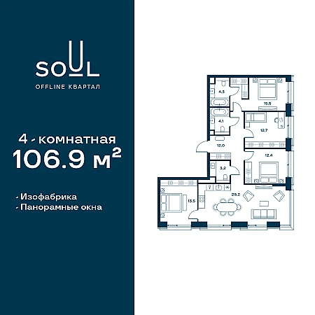 Купить 4к квартиру 106 м² в ЖК Soul (Соул)