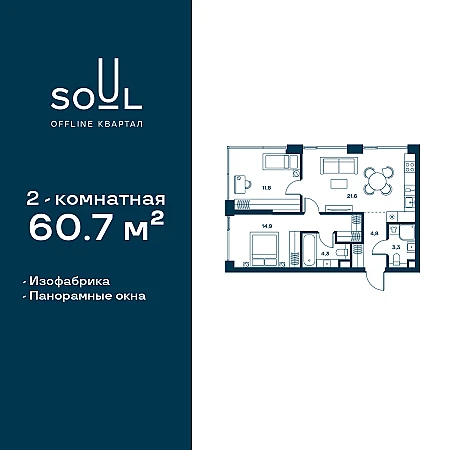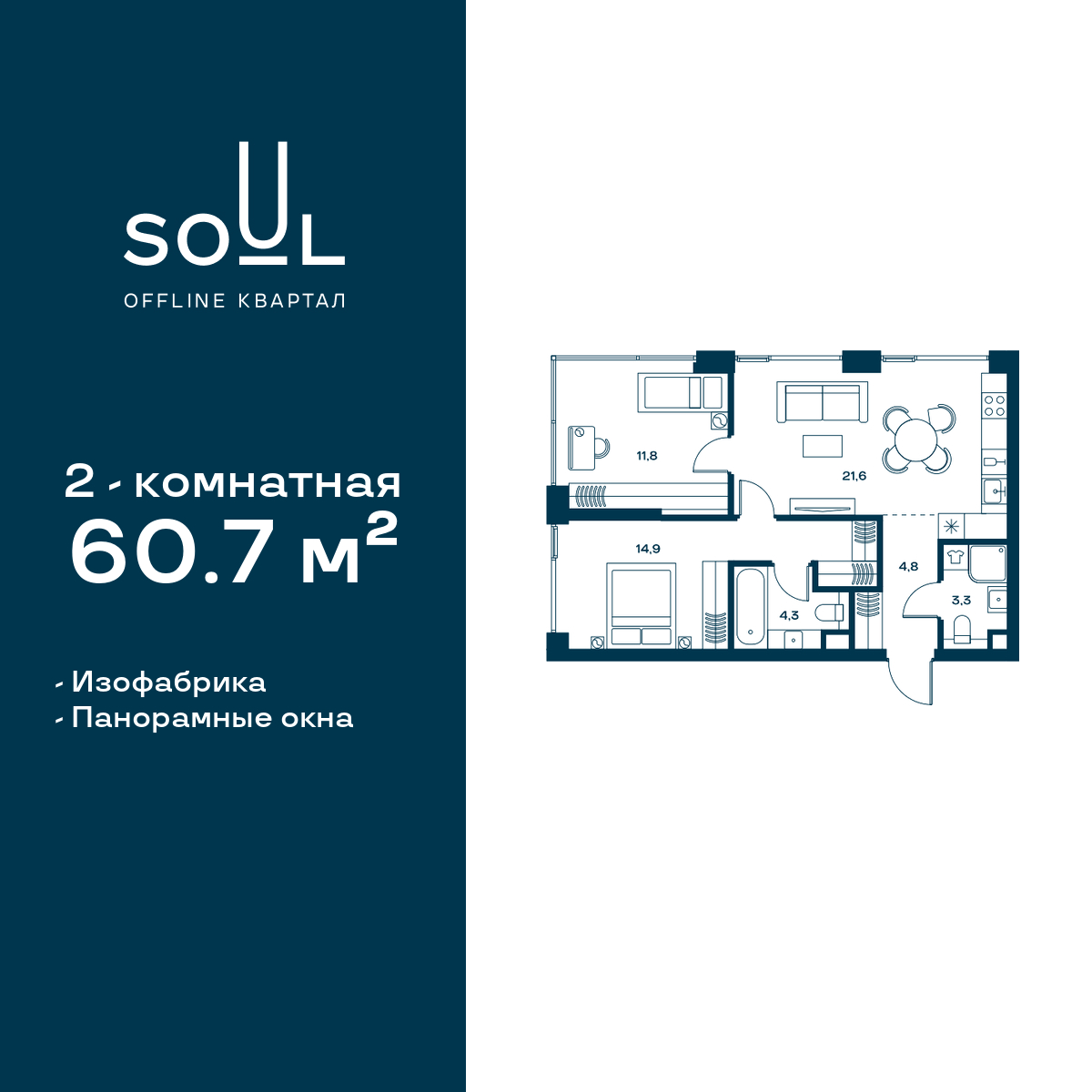 Купить 2к квартиру 60 м² в ЖК Soul (Соул)