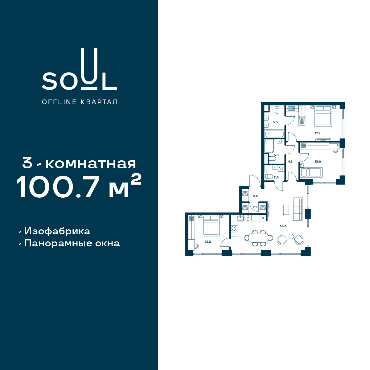 Купить 3к квартиру 100 м² в ЖК Soul (Соул)