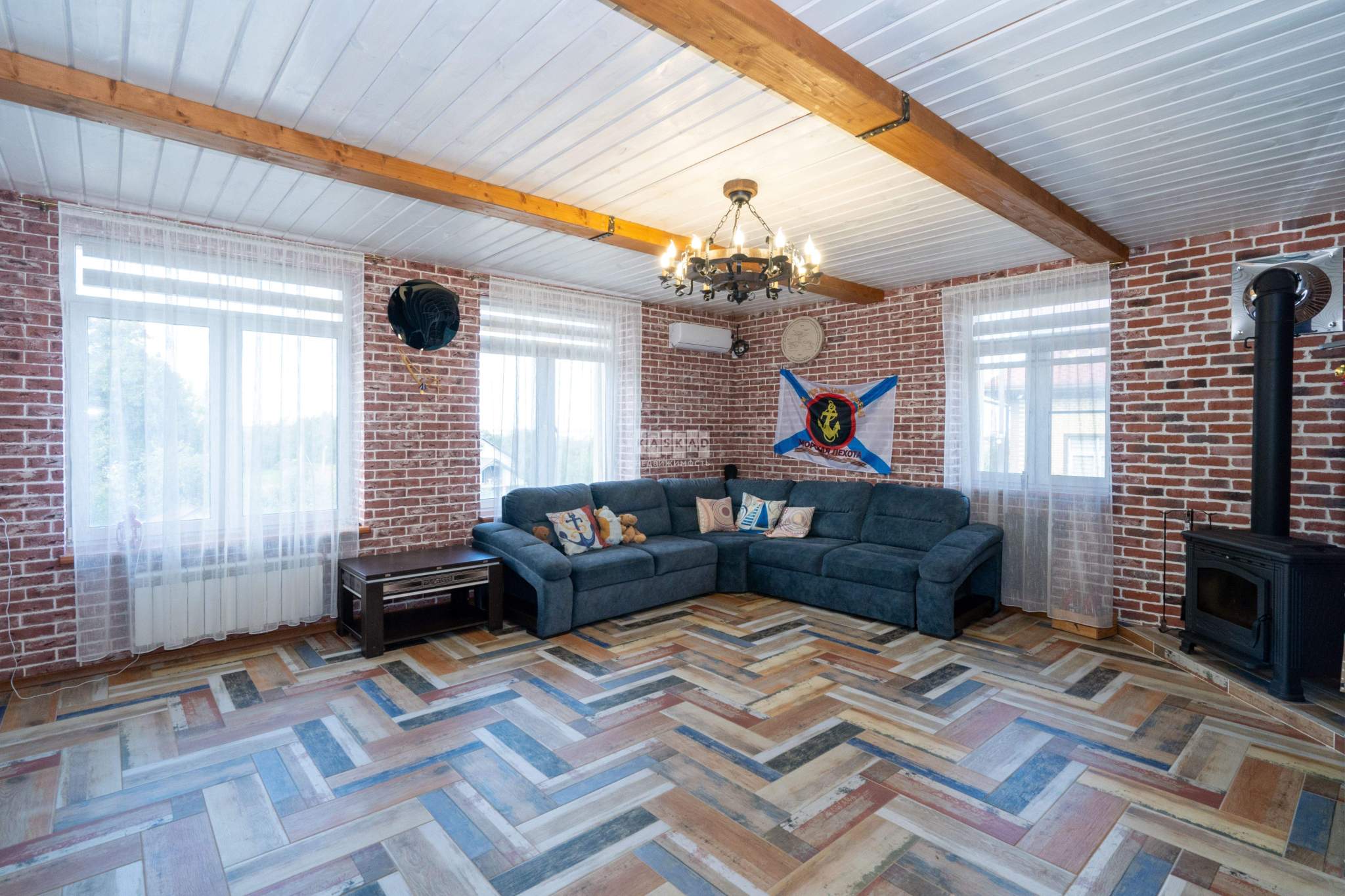 Качественный ремонт, установлены кондиционеры, камин на дровах, теплый пол.