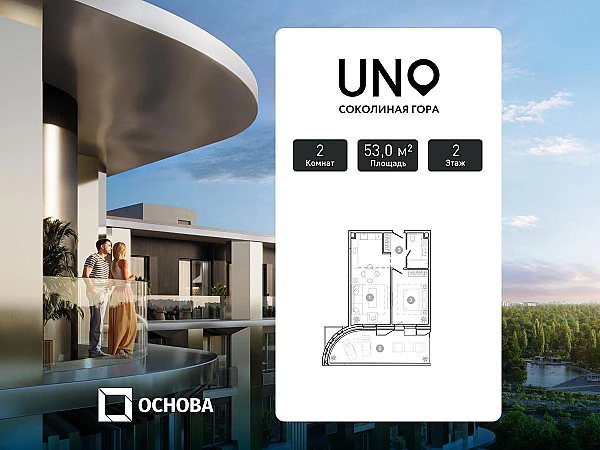 Купить 2к квартиру 53 м² в ЖК UNO.Соколиная гора