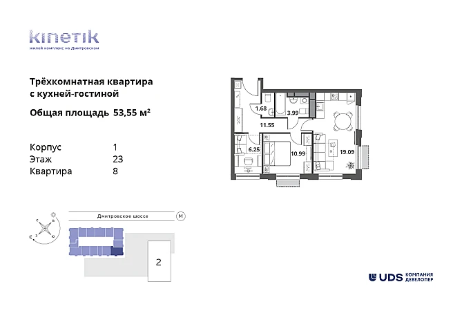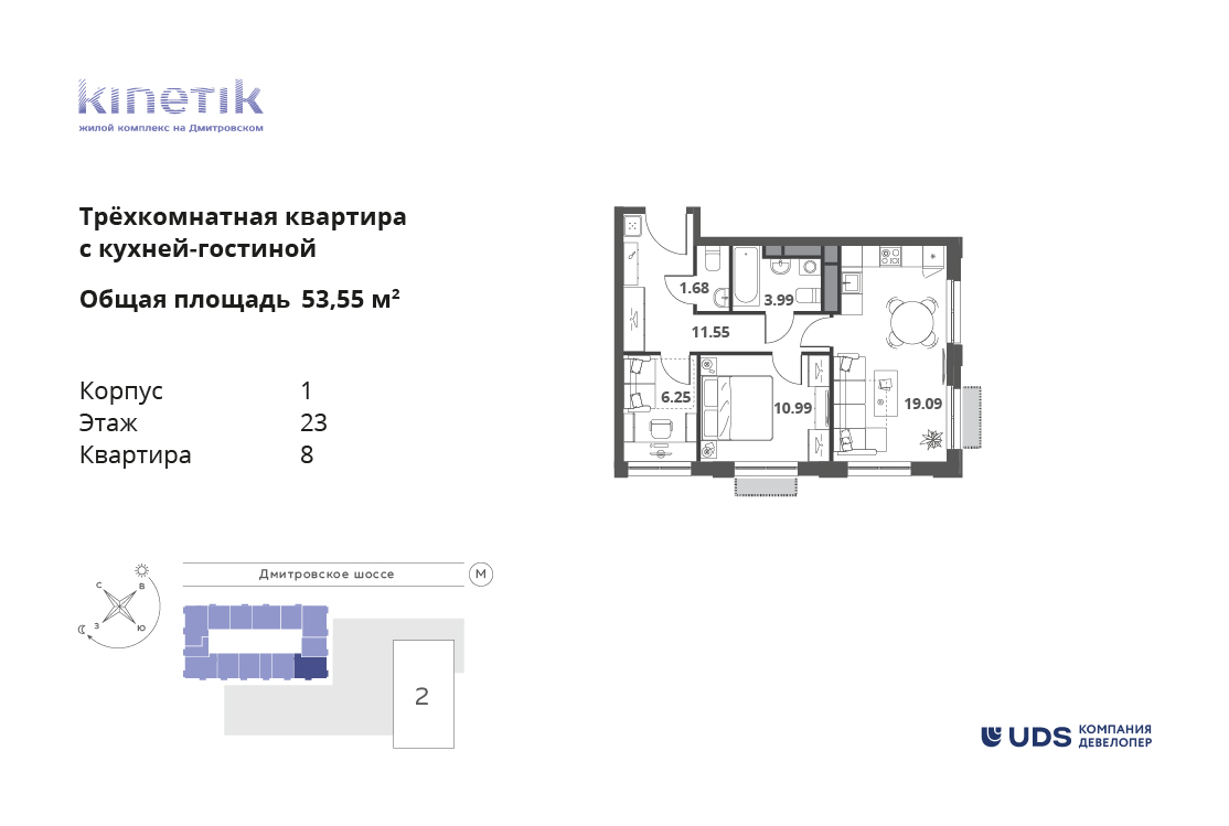 Купить 3к квартиру 53 м² в ЖК Kinetik (Кинетик)