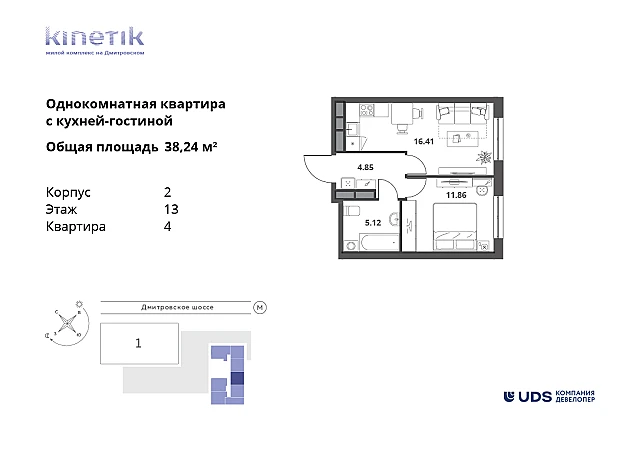 Купить 2к квартиру 38 м² в ЖК Kinetik (Кинетик)