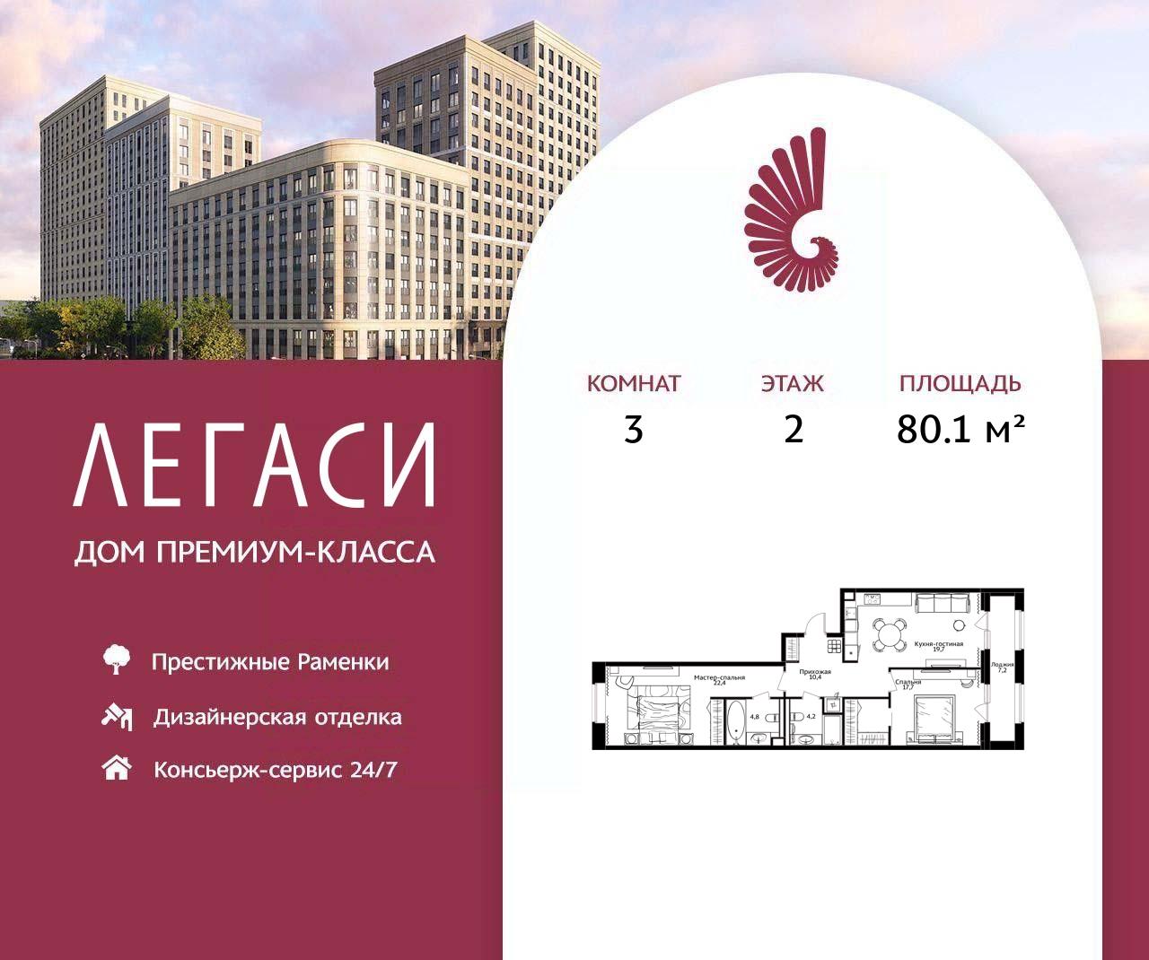 Купить 3к квартиру 80 м² в ЖК Legacy (Легаси)