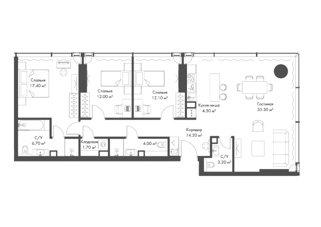 Купить 3к квартиру 111 м² в апарт-комплексе SLAVA (Слава)