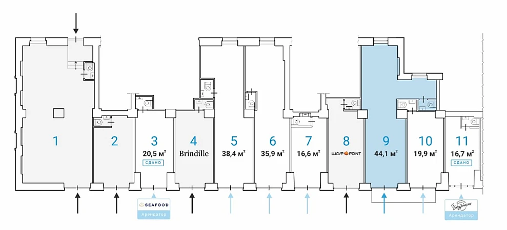 Помещения расположены в крупном сложившемся жилом районе с высокой плотностью застройки и развитой инфраструктурой.