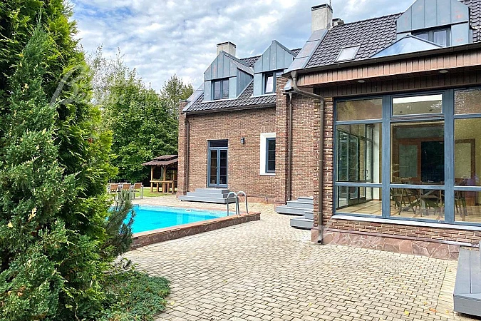 Тип застройки: обжитой к/п. Пл. дома 560кв.м., пл. участка 20 сот. Стадия готовности: меблирован. Материал стен: кирпич. Количество с/узлов полных: 4. Количество комнат всего: 7.