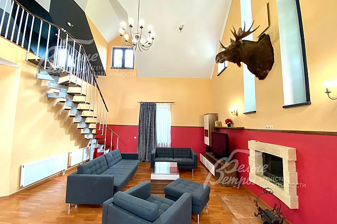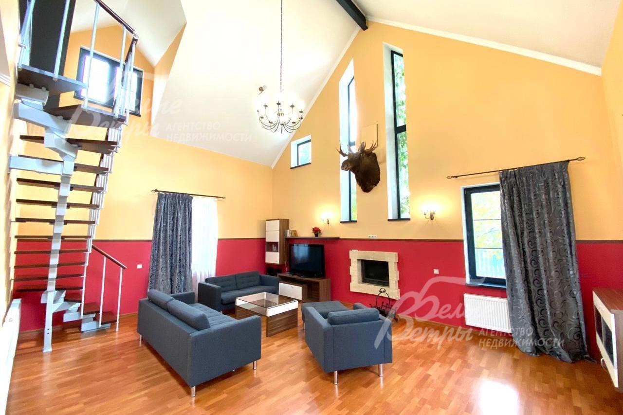 Мебель, оборудование: дом полностью обставлен импортной мебелью. Установлен кухонный гарнитур с островом в стиле loft. Есть вся необходимая бытовая техника. В гостиной мягкий гарнитур, обеденный стол со стульями. В спальнях кровати и корпусная мебель. Везде люстры, светильники, шторы..