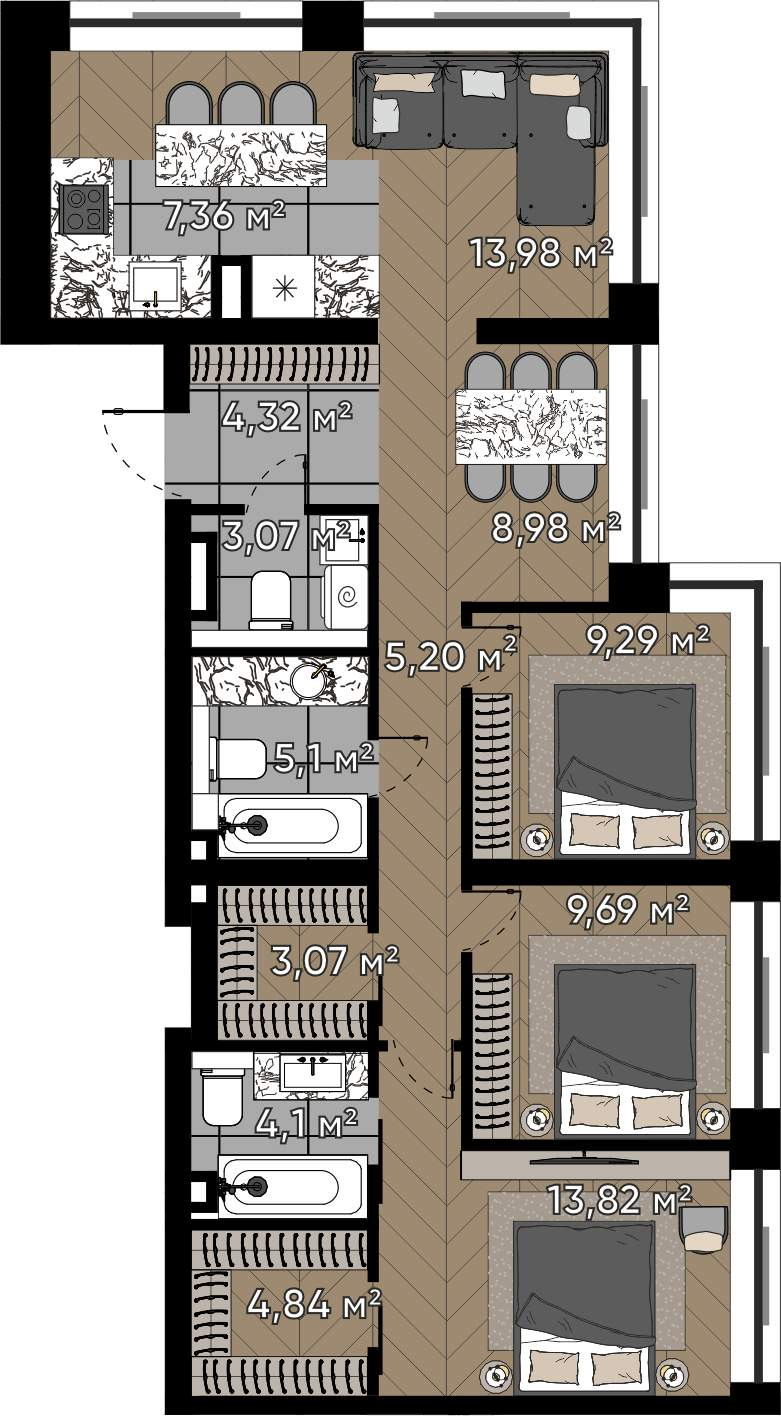 Квартиры с угловым остеклением - максимальный свет и панорамные виды на природу и город, создающие атмосферу свободы и комфорта.