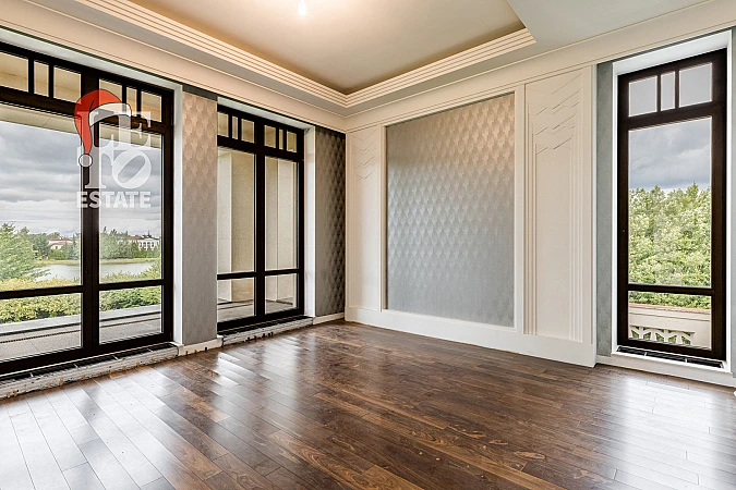 Вашему вниманию представлен готовый дом площадью 1244 кв. м в охраняемом коттеджном поселке Монолит в 23 км от МКАД по Новорижскому шоссе. Дом на участке 35 соток расположен в первой линии от озера.