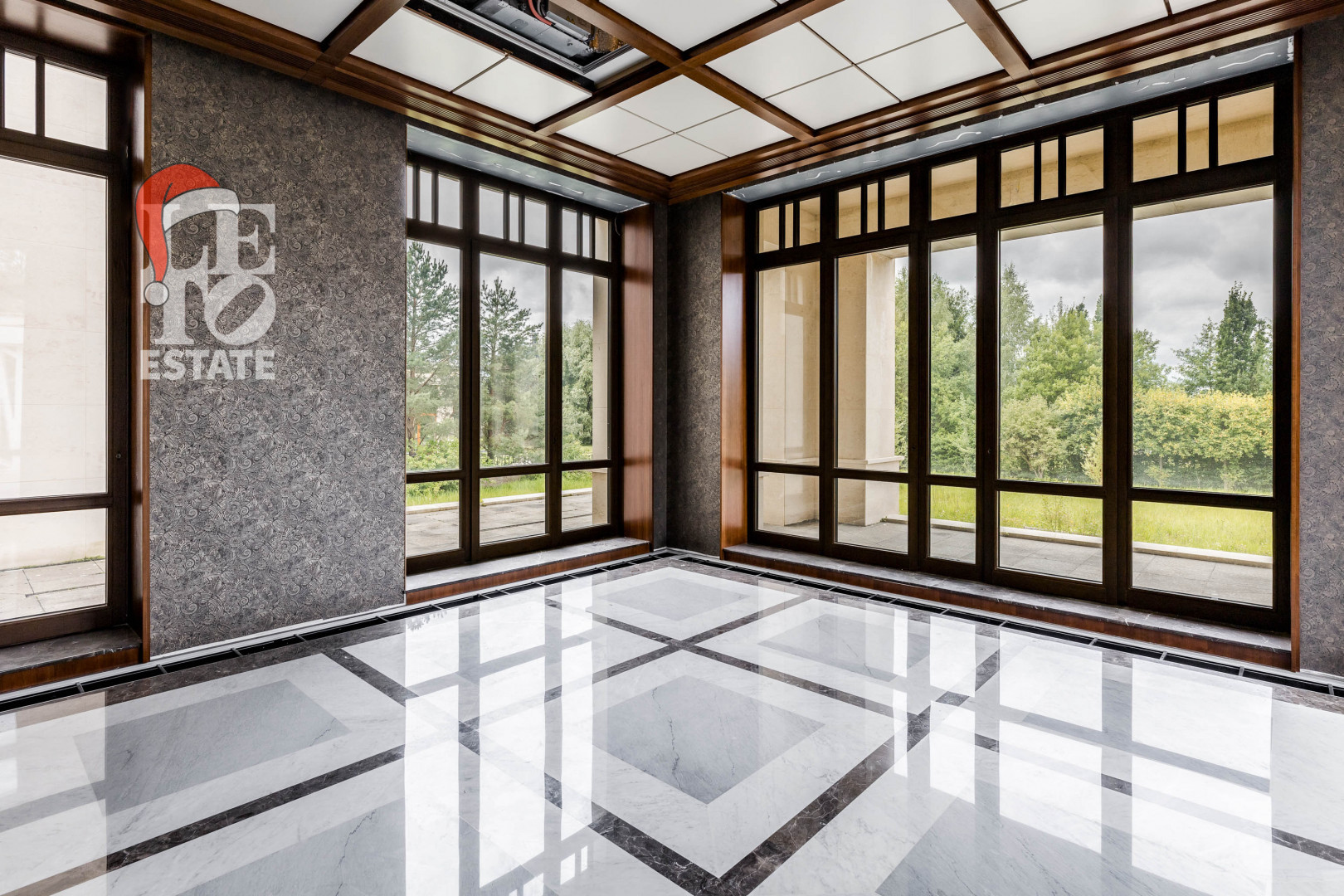 Дом встречает нас каминным залом с видом на сад. Панорамные окна наполняют дом естественным светом, гармонично смягчая большое количество деревянных элементов в декоре. В доме два выхода на террасы, в приватные зоны отдыха и балконы с потрясающими видами на озеро и церковь Сергия Радонежского.
