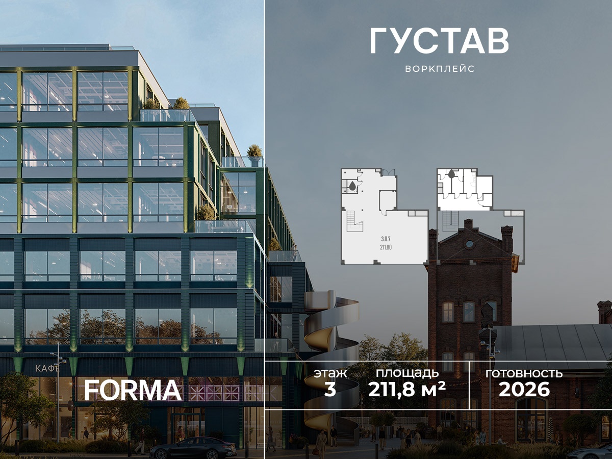 Купить офис 211 м² в бизнес-квартале ГУСТАВ воркплейс