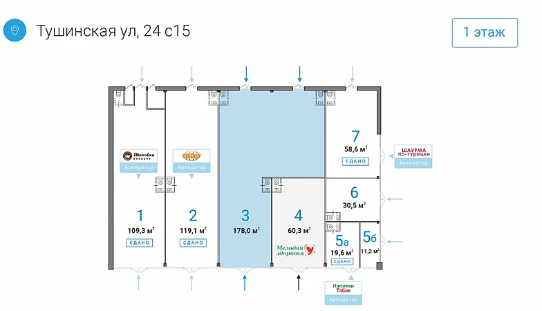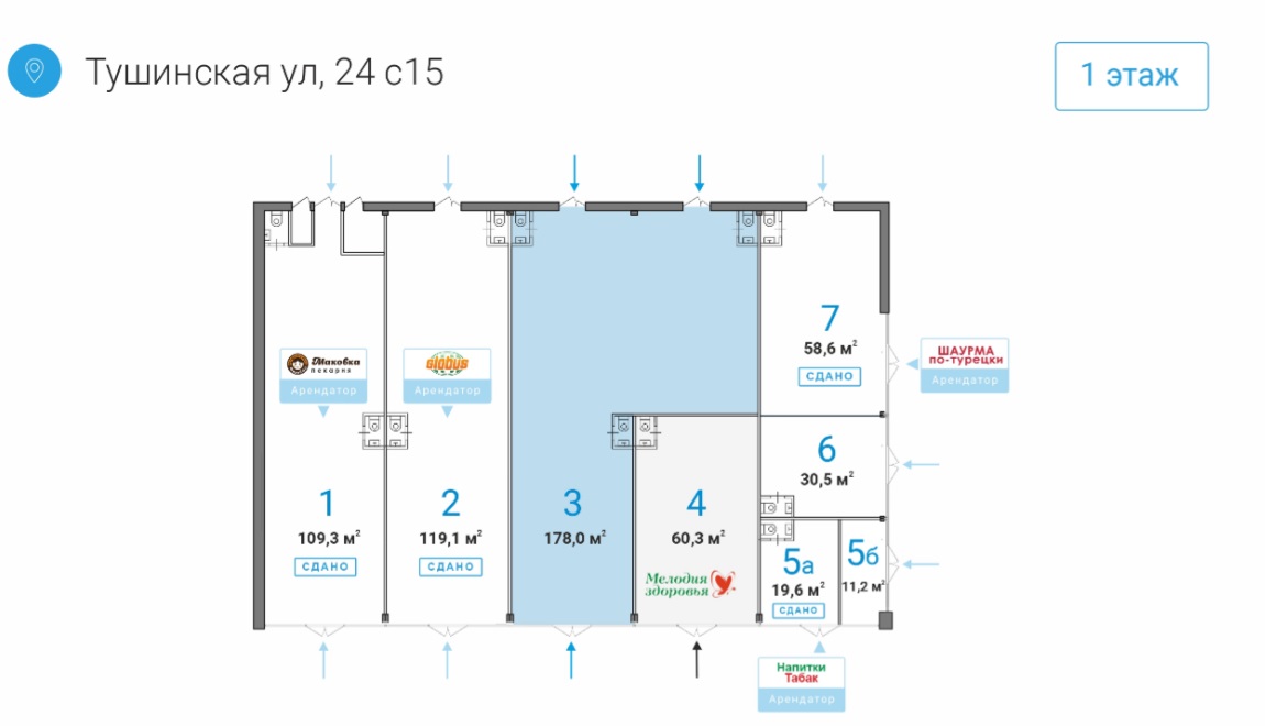 Номер лота на нашем сайте: 38506. Аренда нежилого помещения в непосредственной близости от платформы МЦД и станции метро "Тушинская". Первая линия домов, отличная видимость. Сверх-интенсивный пешеходный трафик. Развитая инфраструктура, крупный жилой район. В шаговой доступности - ТЦ "Праздник". Отдельно стоящее нежилое здание. Отдельный вход в помещение с фасада дома, своя погрузка-разгрузка. Высота потолков - 4,3 м. Новые большие витрины. Все помещения после капитального ремонта с заменой коммуникаций. Помещение подготовлено под чистовую отделку. Под любой вид деятельности. Соседние помещения арендуют: кулинария (новый формат) международной сети гипермаркетов GLOBUS, федеральная сеть пекарен "Маковка", Ивановский трикотаж, табак-кофе. На поэтажном плане - помещение 3. Прямая долгосрочная аренда. УСН.