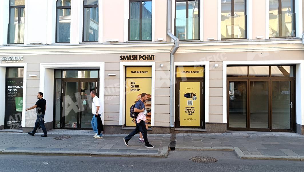 Интенсивный пешеходный трафик, первая линия, престижный район Патриарших прудов в историческом и деловом центре Москвы, в непосредственной близости расположены бизнес-центры и элитные ЖК.