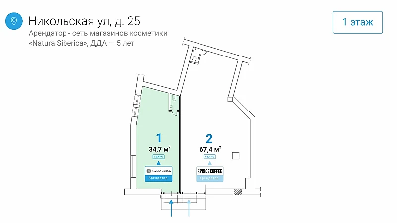 Номер лота на нашем сайте: 36062. Предлагается к приобретению готовый арендный бизнес общей площадью 34.7 кв.м., на первой линии домов пешеходной улицы Никольская. Метро "Лубянка" менее 1 минуты пешком. Отличная пешеходная и транспортная доступность. Арендатор Сеть магазинов косметики Natura Siberica . МАП составляет 1 040 440 рублей. Коммунальные платежи и электричество оплачиваются арендатором отдельно. ДДА 5 лет. Рядом "Центральный детский магазин", торговый и офисный центр "Никольская Плаза", гостиницы "St. Regis Moscow Nikolskaya" и "Метрополь", Красная Площадь, ГУМ, ЦУМ и др.