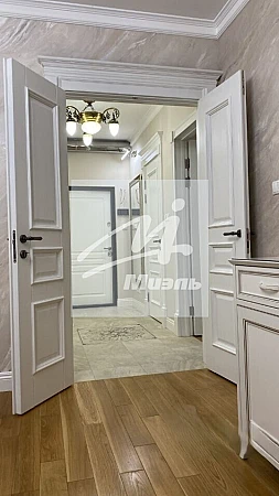 Просторная и уютная 2-комнатная квартира общей площадью 56,6 м², жилая площадь — 45 м², кухня — 9 м², расположена на 2 этаже 15-этажного дома 2015 года постройки. Квартира продается со всей мебелью и бытовой техникой, выполнен очень качественный ремонт и создана достойная обстановка. Полы — массив дуба, потолки и стены отделаны штукатуркой с фасадной сеткой, шпатлёвкой и стеклохолстом (Oscar), окрашены краской Benjamin Moore с пожизненной гарантией. Использованы итальянская и испанская плитка, двери из массива дуба выполнены на заказ. Люстры и фурнитура — из Италии, мебель — итальянская из массива дуба и ясеня.